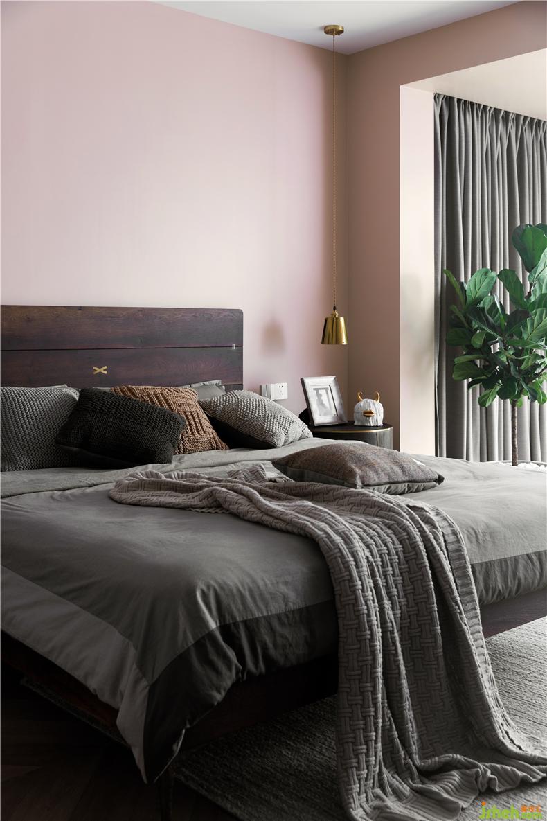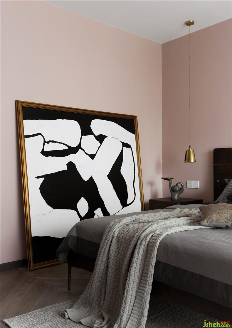 搭配實(shí)木床與黃銅吊燈,輕復(fù)古與現(xiàn)代的自然混搭,有一絲文藝,又有一絲浪漫,完美詮釋屋主個(gè)性,不失生活品味