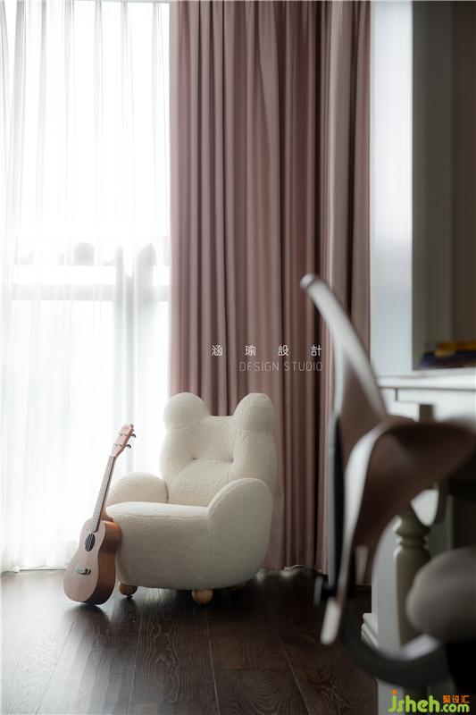 女兒房間的家具都是靠墻擺放,留出足夠的兒童活動(dòng)學(xué)習(xí)空間,打通了原來(lái)的陽(yáng)臺(tái)區(qū)域,整面落地窗帶來(lái)足夠的自然光線;