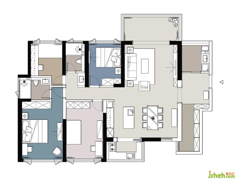 原始戶型基礎相對較方正,布局并沒有太大的改變,只是根據(jù)業(yè)主的個人生活習慣與使用需求優(yōu)化了空間,稍微做了一部分改動。