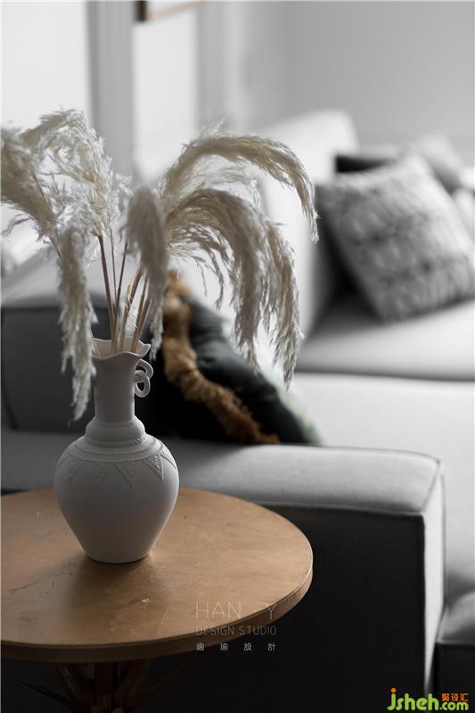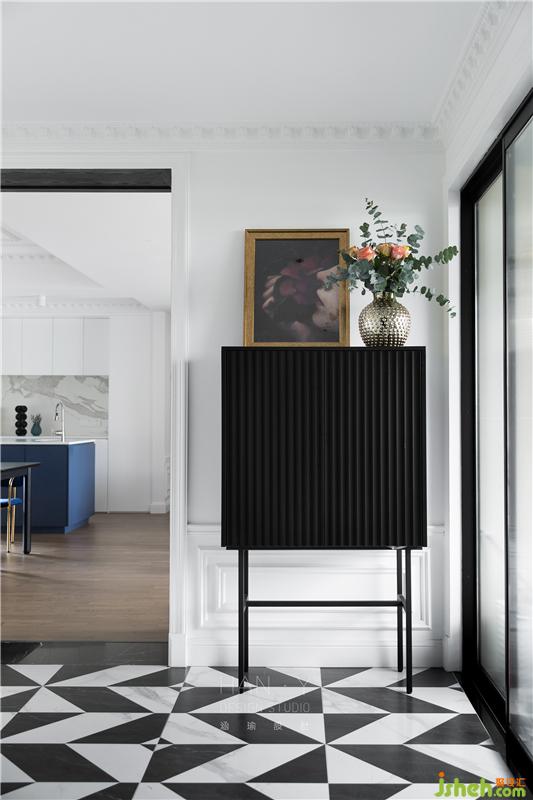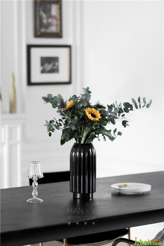 借著透亮的玻璃引入的陽光,一幅藝術感的掛畫映入眼簾,黑色極簡質感的端景桌時尚又精致,姿態(tài)柔和的綠植插花,襯托出對生活的儀式感。