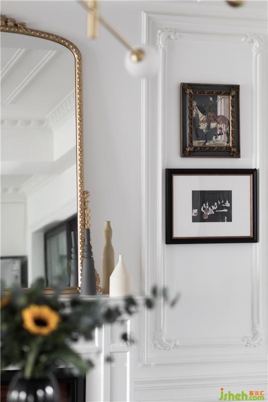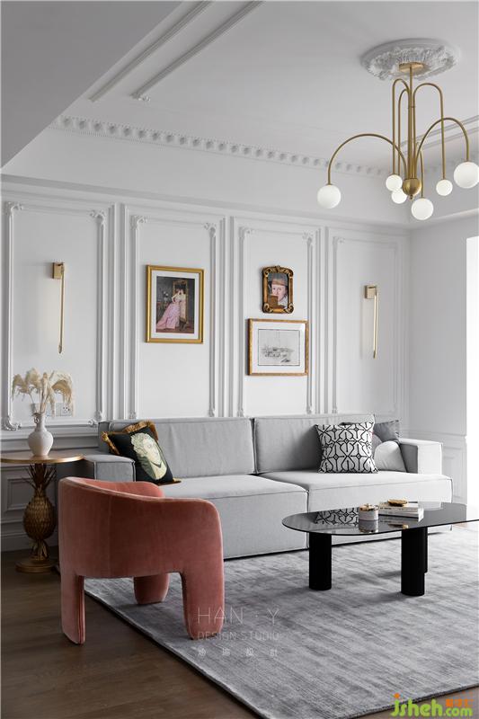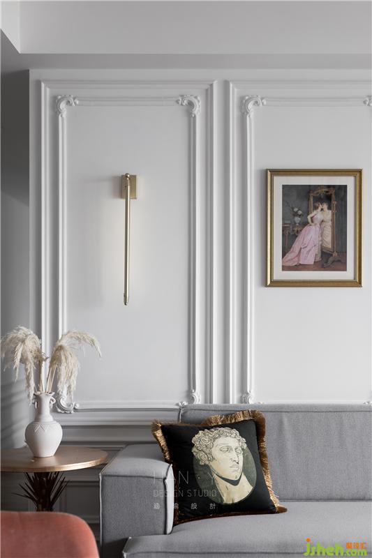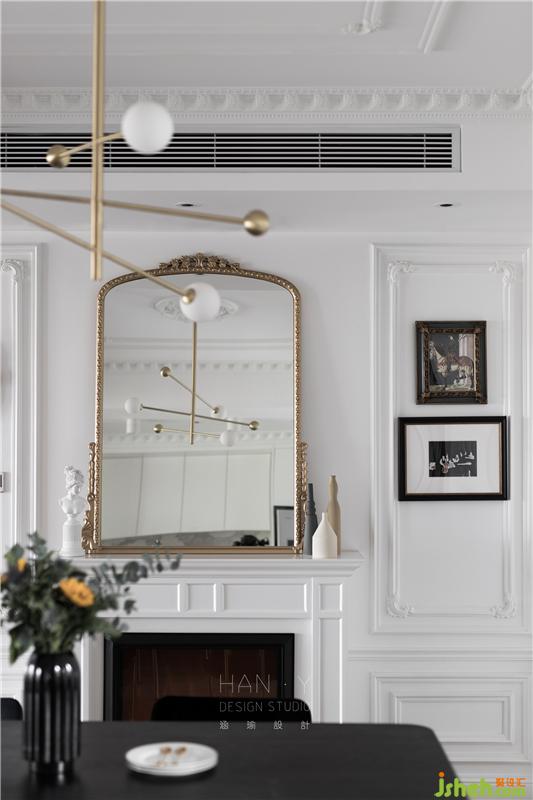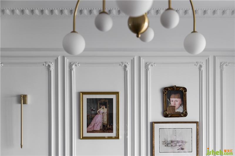 傳統(tǒng)法式風格略顯厚重,所以特別弱化了古典濃厚的感覺去邂逅現(xiàn)代風的混搭,不需要多余的造型裝飾,浪漫的法式線條與輕微雕花游走于整個空間,簡潔典雅而充滿品味,利落干凈的空間沒有一絲累贅。