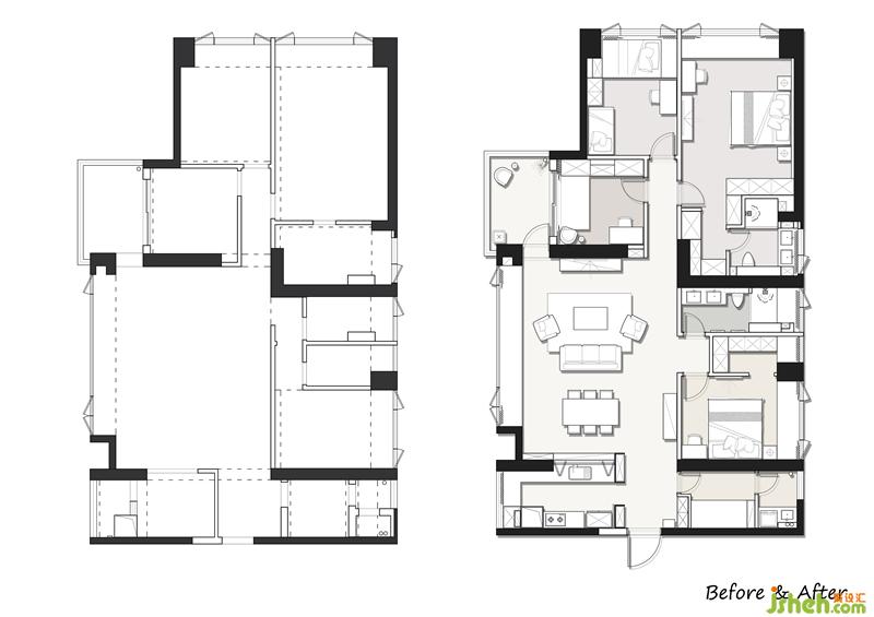 原本次臥這一塊的三個(gè)空間動(dòng)線很繁瑣,重新規(guī)劃了三個(gè)空間使動(dòng)線合理