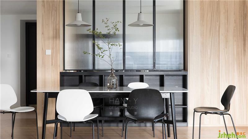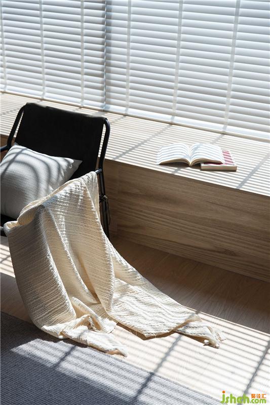 開放式一體化設(shè)計(jì)的客餐廳,有意無意的劃分著區(qū)域,將天然材料融入家中,感受溫和柔軟的居家氛圍。諾大的飄窗與百葉隨時(shí)恭候著陽光的到來,去演繹不同的藝術(shù)光影。