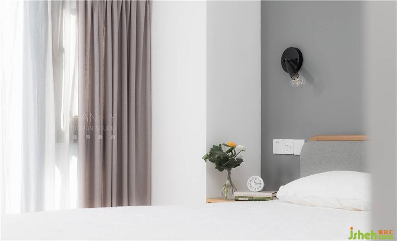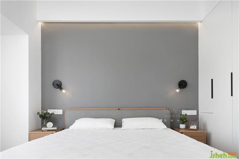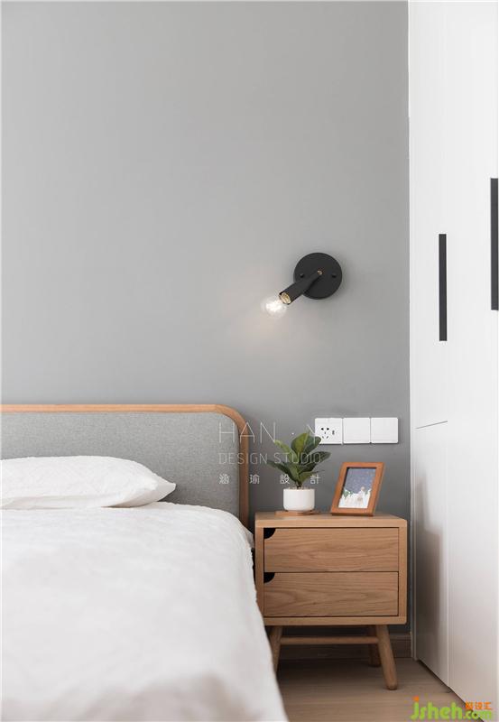 主臥空間整體以干凈溫馨的設(shè)計(jì)為主,床頭墻面采用高級灰色的格調(diào),搭配自然的木色,結(jié)合大面積的白色營造一份簡單,明亮的空間。加上這個(gè)空間采光特別充足,視覺空間上也寬闊了很多。