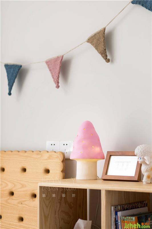 為了女兒的安全性考慮,家具用的是可愛的造型兼圓滑的材質(zhì)。在這個(gè)空間里,軟裝都是比較靈活的,沒有做整體的柜體硬裝,也是為了方便女兒長大后更換風(fēng)格。