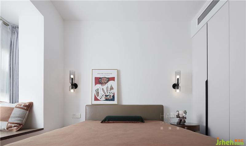 次臥同樣以簡(jiǎn)約質(zhì)感的方式表達(dá),搭配上豐富的微暖色系,柔和的低飽和度色系很耐看,也給人一種簡(jiǎn)約又不失溫馨的感覺。