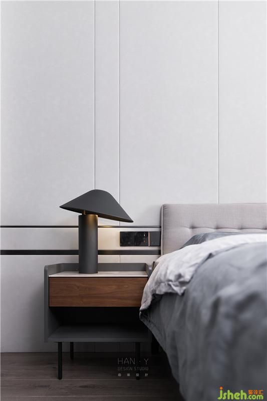 作為家庭中的私密靜區(qū),用了大量的護墻板去凸顯質(zhì)感,消除掉冰冷的墻體帶來的不舒適感。運用不同明暗灰度的裝修設計手法,安靜色系營造出一種自然質(zhì)樸的氛圍,保有了主臥的簡潔與寧謐,是睡眠時分的美好舒適領地。