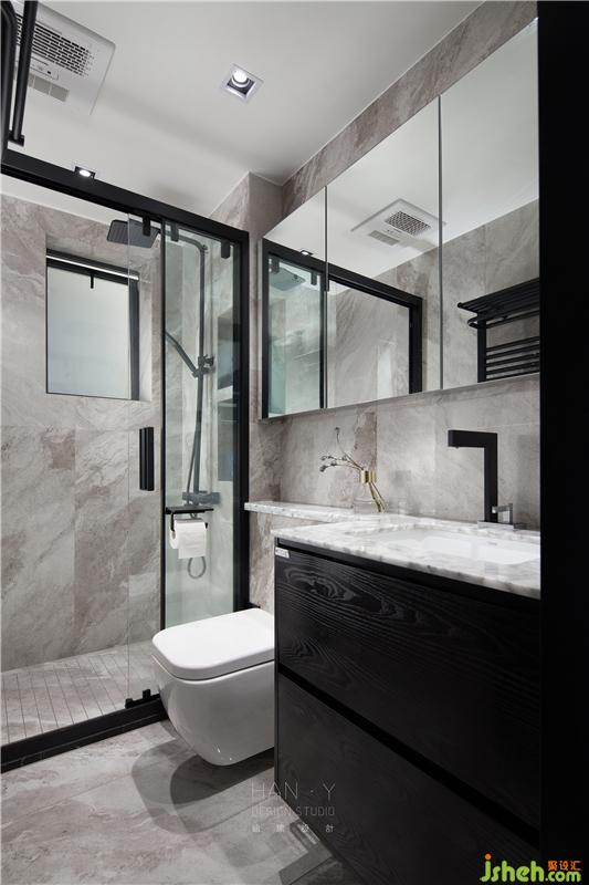 略帶光澤的紋理墻磚,透過儲物鏡面的反射,讓空間尺度放大并增加空間的特殊性與視覺感,締造了家里最后一個私人空間的完美性。