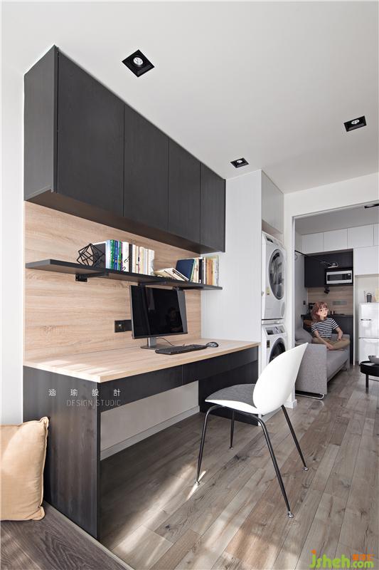 臥室隔壁的多功能房間,同樣用到了玻璃推拉門(mén),采光通透。作為書(shū)房工作室,也可作為洗烘衣服的空間,掛燙衣服等都是可以這個(gè)空間進(jìn)行,也可是坐在地臺(tái)上感受溫暖的陽(yáng)光與欣賞窗外的美景的休閑區(qū),一室多用,實(shí)現(xiàn)功能最大化。