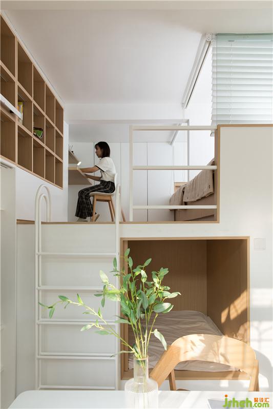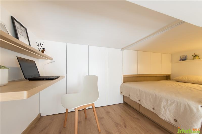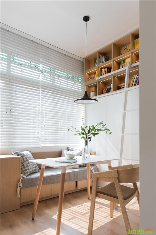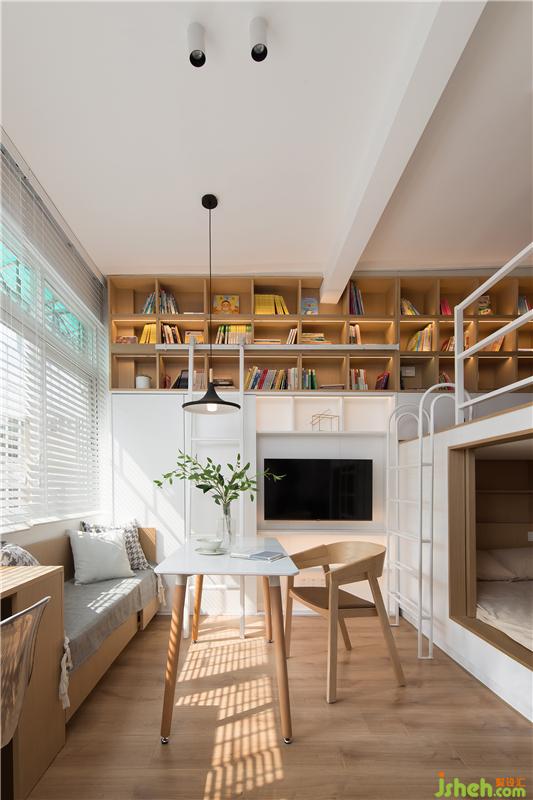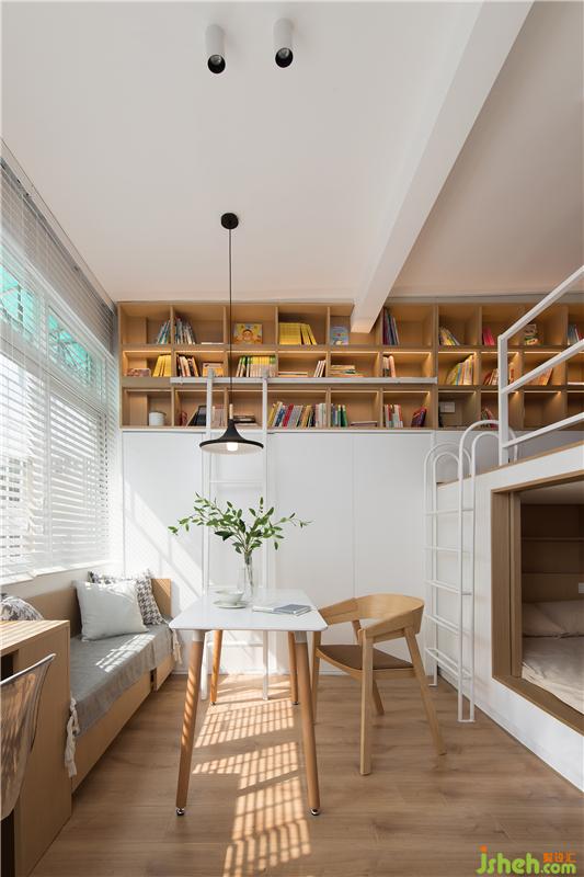樓上的空間也是設(shè)計了很多的收納,加上一整面的書柜,君君愿意在樓上學(xué)習(xí),還是在樓下學(xué)習(xí)都可以,隨君君的喜好隨意在這個空間里活動。