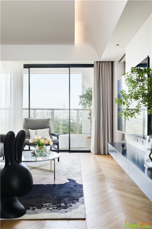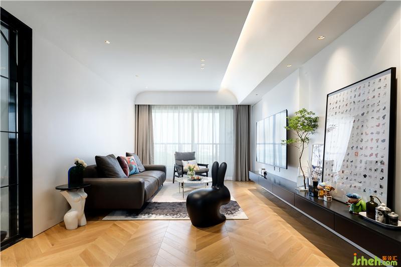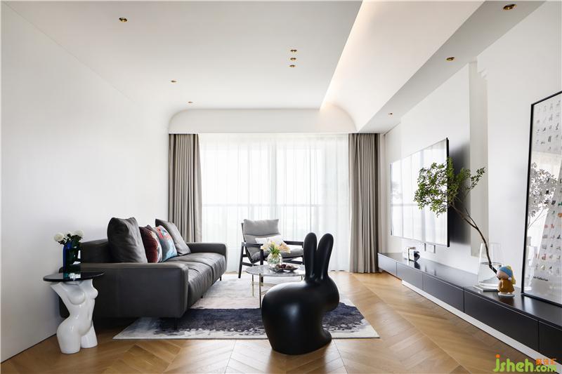 弧形天花內(nèi)藏?zé)魩?,無主燈照明更顯空間層次,搭配上淺灰色窗簾讓空間多了一份寧靜。