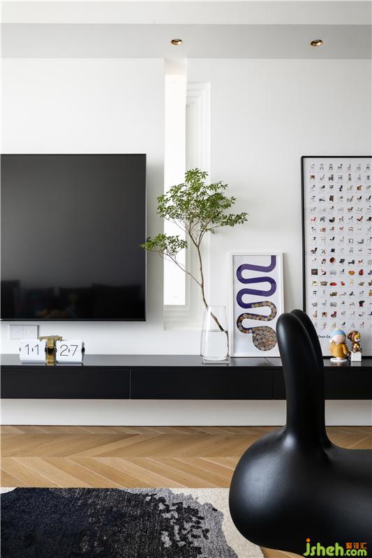 隨處出沒的黑色小兔為空間注入個性趣味。創(chuàng)意裝飾畫內(nèi)封存的是夫妻兩周游世界的各國紀(jì)念錢幣,訴說著一段段奇妙的異國游記。