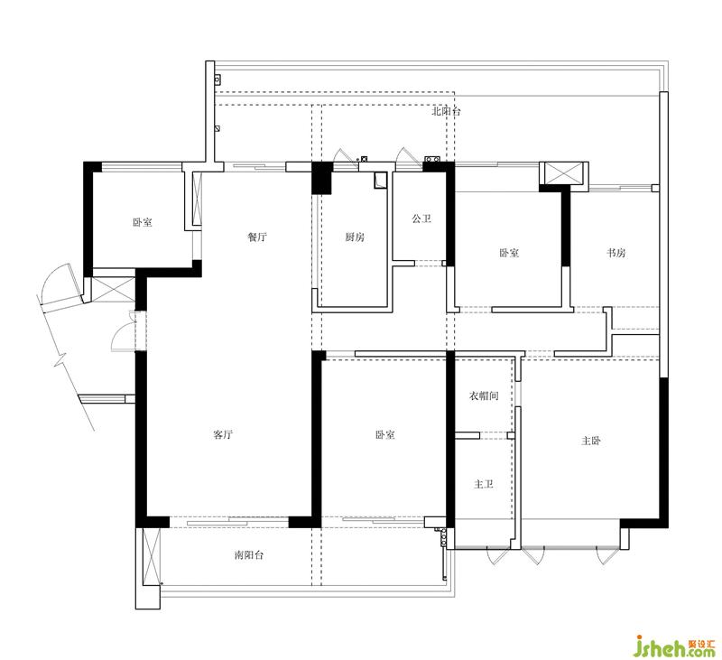 拓寬略顯狹窄的走廊空間,將次臥與次衛(wèi)的墻面向里推。