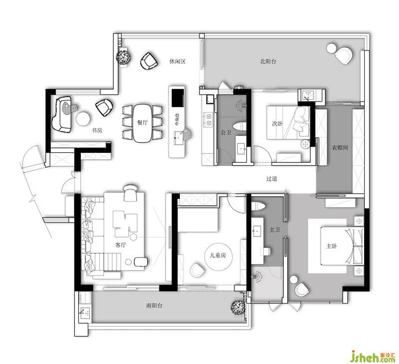 戶(hù)型方正,格局規(guī)整,南北通透外加雙陽(yáng)臺(tái),在戶(hù)型優(yōu)勢(shì)的基礎(chǔ)上設(shè)計(jì)師更優(yōu)化了空間,取其缺點(diǎn)加以改善完美空間。當(dāng)把空間的規(guī)劃放在第一位之后,拆掉多余隔斷,就可以在視覺(jué)上擴(kuò)大空間的總面積,并能為公共區(qū)域增加更多采光。