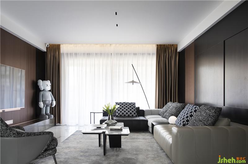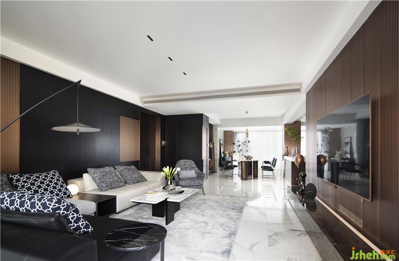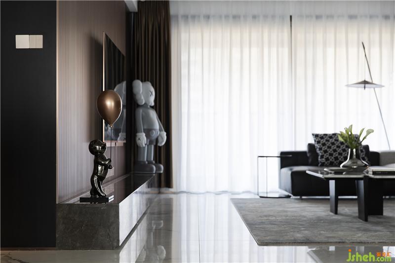 金屬格柵陣列排序,搭配大理石石材電視柜臺(tái),在滿(mǎn)足功能的情況下,少即是多,用“減法”的設(shè)計(jì)方式,去實(shí)現(xiàn)高級(jí)的狀態(tài)。