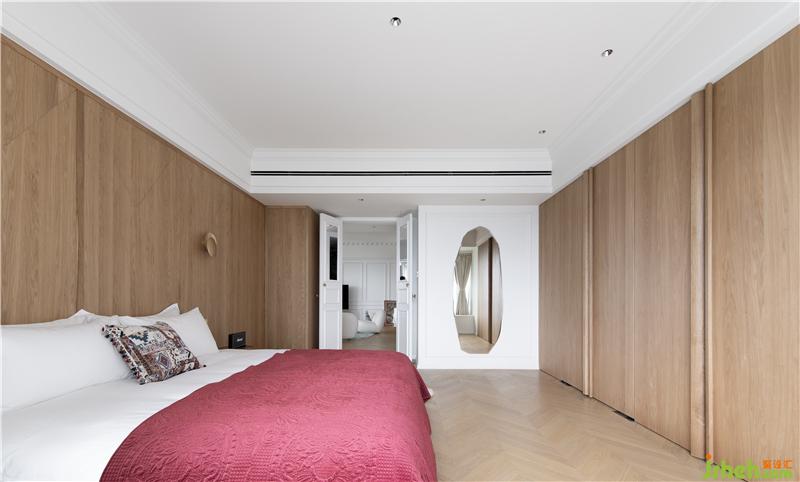 主臥將優(yōu)雅格調(diào)契合于空間的留白,家居裝修沒(méi)有增設(shè)過(guò)多的陪襯與擺設(shè),使純凈雅致的空間基底更具為純粹。原木質(zhì)感的圍合,點(diǎn)綴少量金屬元素,同時(shí)引入窗景,烘托出休憩空間的舒適氛圍。