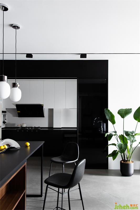 推開黑色玻璃推移門后,也足夠藏下人間煙火氣。棱角塊面分明的簡潔,半開放式的設(shè)計(jì)在考量互動(dòng)體驗(yàn)之余,也讓空間盡顯純粹、干練。