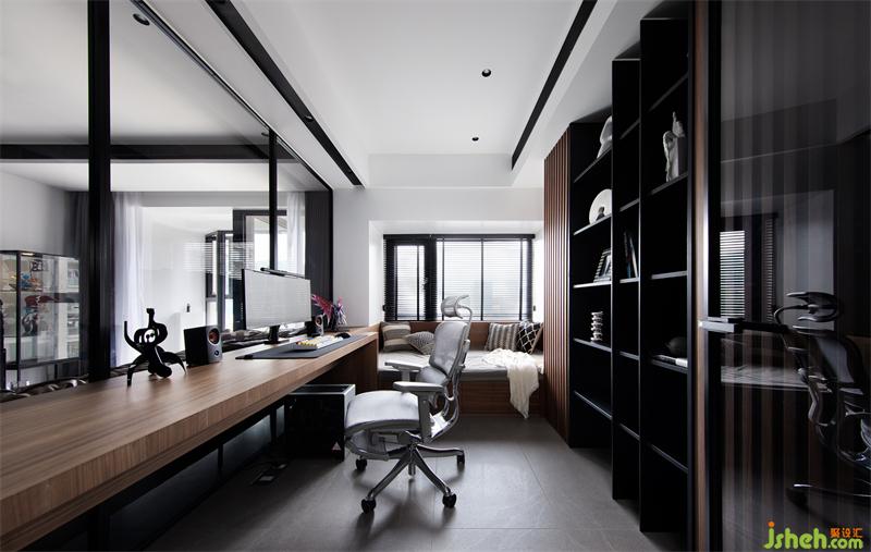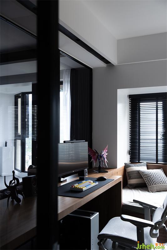 獨(dú)立書(shū)房是屋主最愛(ài)的角落,視線上與客廳呈半聯(lián)通狀態(tài),可以隨時(shí)和喜愛(ài)的手辦待在一起。平時(shí)的加班工作、娛樂(lè)電競(jìng),或是困倦時(shí)肆意翻躺于柔軟的臥榻上,享受隨性的慵懶時(shí)光。