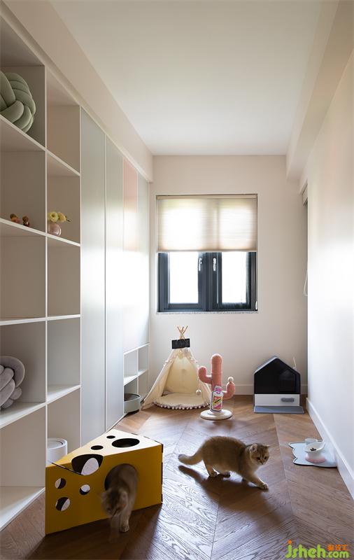 由于目前還沒有添寶寶,這里暫時是橘子的小天地。玩具、小屋、貓砂、貓糧,都是鏟屎官對小主子滿滿的寵愛,超大的儲物空間也預留出了未來的規(guī)劃。