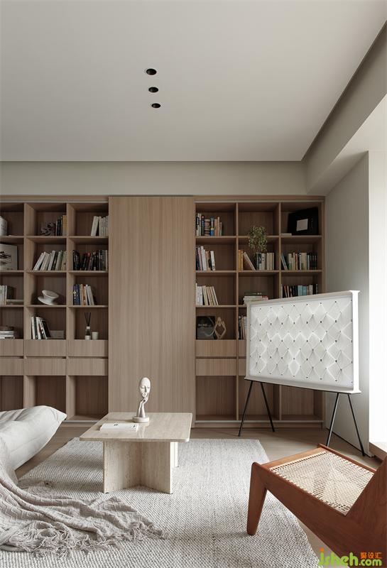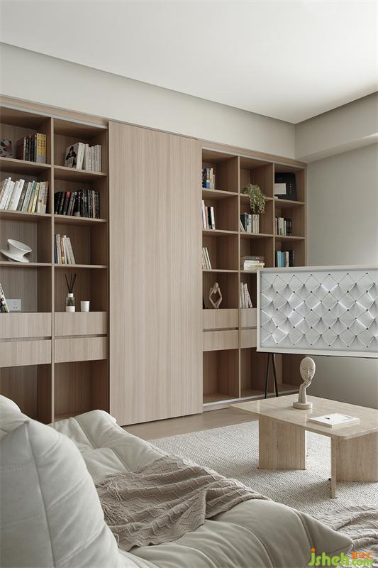 根據(jù)屋主的需求,我們從功能和美學(xué)的角度審視房屋的每個角落元素,在客廳設(shè)置了整面的開放格書柜,既有收納又有展示的空間,根據(jù)喜好放置書籍、藝術(shù)擺件等,隨時保持家的新鮮感。