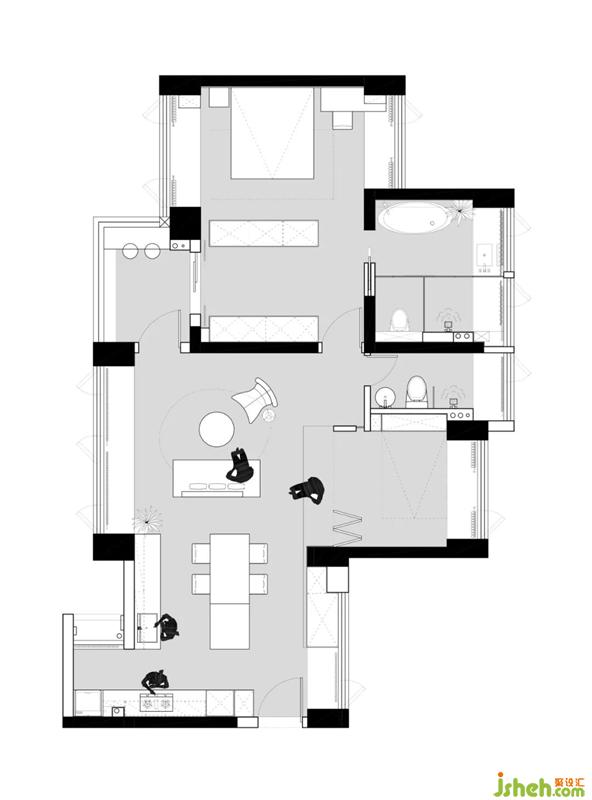 ③ 主臥與書房的入口動線比較緊湊,主衛(wèi)的位置不夠便利。