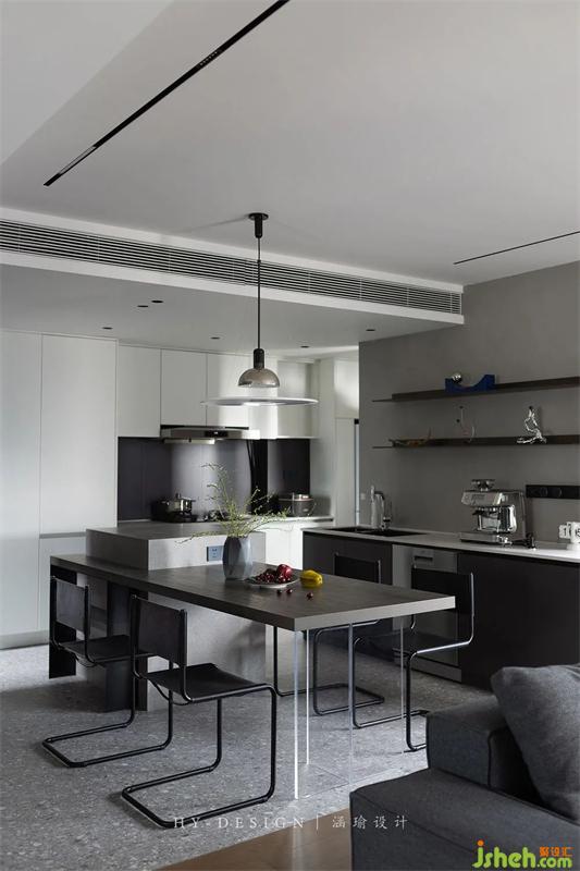 入門即見生活,餐廚一體化消融了原始結(jié)構(gòu)的障礙,使各公共區(qū)間有機(jī)串聯(lián),生活的煙火氣在這里變得簡單而愜意。