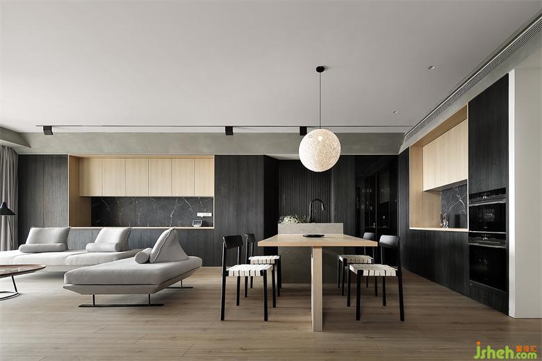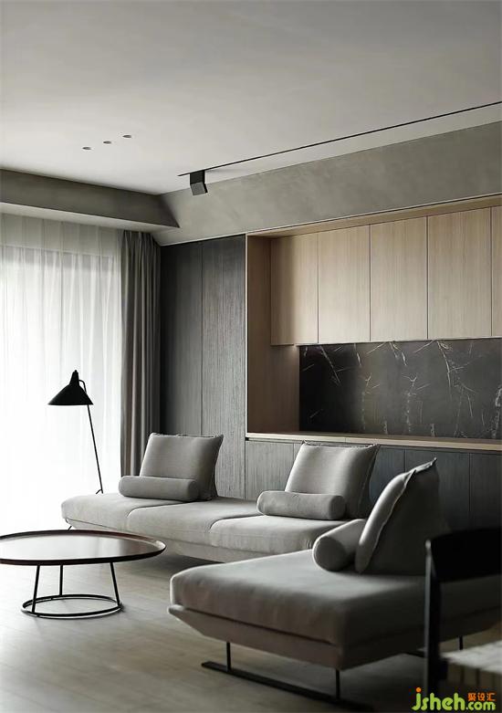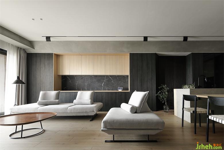 色調(diào)的選擇上以素雅為主并且融合了木質(zhì)元素呈現(xiàn)利落而純粹的都市氛圍感,家裝設(shè)計(jì)營(yíng)造出一個(gè)曖昧的生活場(chǎng)域。