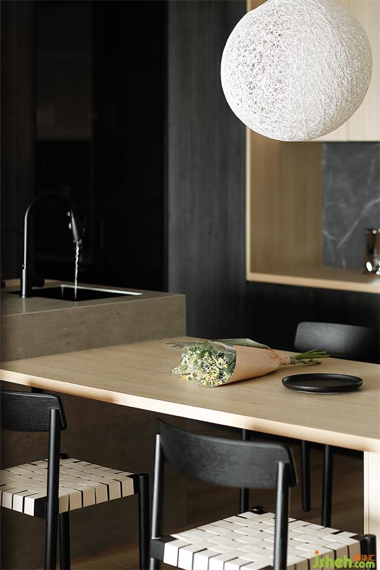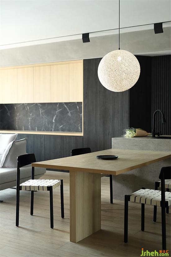 球形的竹編吊燈,在方與圓、光與影的對(duì)話中,家裝設(shè)計(jì)傳遞出整體空間的節(jié)奏,醞釀出和諧溫馨的氛圍,也易于映襯美食的色澤,激發(fā)食欲,挑撥情緒進(jìn)入放松狀態(tài)。