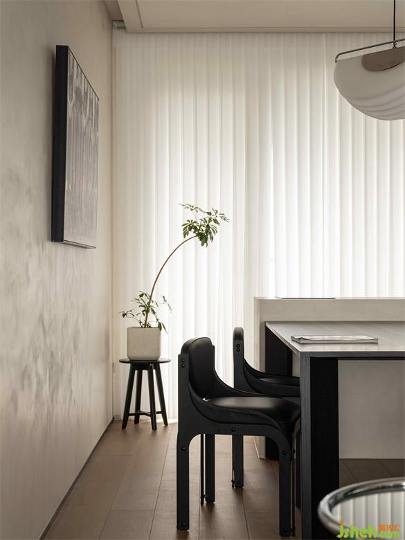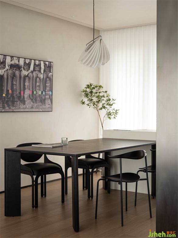 客廳與餐廳銜接開放,空間的趣味互動(dòng)極大增強(qiáng),原本的小型島臺(tái)連接餐桌,深圳金眾麒麟公館裝修設(shè)計(jì)拓展出更多實(shí)用空間,深淺有度的黑白灰調(diào)與墻面掛畫,勾勒出個(gè)性沉穩(wěn)、不驕不躁的紳士氣質(zhì)。