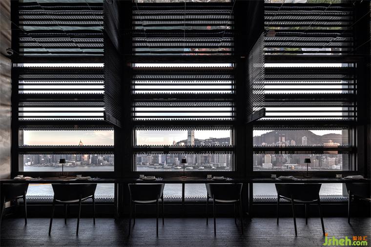 沿著 CVIEW“華”的全景窗戶漫步時,會經(jīng)過一條長走廊,猶如置身在中國庭院里的游廊上。走廊上共設有 40 個向窗二人座位,飽覽維港醉人美景。優(yōu)雅的窗框與 M+ 的建筑設計融合,其優(yōu)美的波紋輪廓更致敬中國傳統(tǒng)屋頂。座位兩側安排了流動式垂簾,為客人提供私密空間。