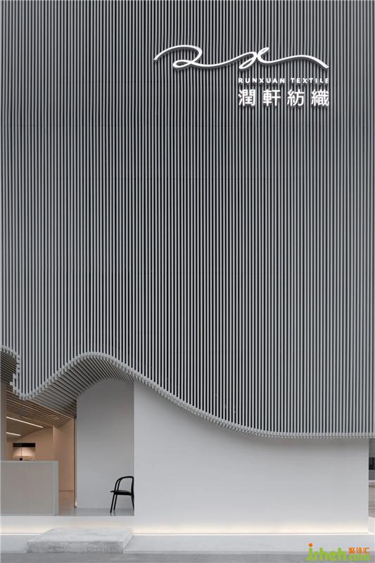 如果說(shuō)對(duì)于棉與紗線(xiàn)的展現(xiàn)是直白的,那對(duì)于布的意向表達(dá)就是委婉的。相對(duì)于常規(guī)室內(nèi)設(shè)計(jì)在建筑正立面添加表現(xiàn)布的元素,設(shè)計(jì)師通過(guò)建筑感的設(shè)計(jì)將布的曲韻在室內(nèi)外一體化和立體化,在設(shè)計(jì)上不僅是一種新穎而創(chuàng)新的表現(xiàn)手法,也能讓人有強(qiáng)烈的感知和形成記憶點(diǎn)。