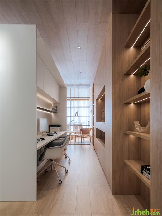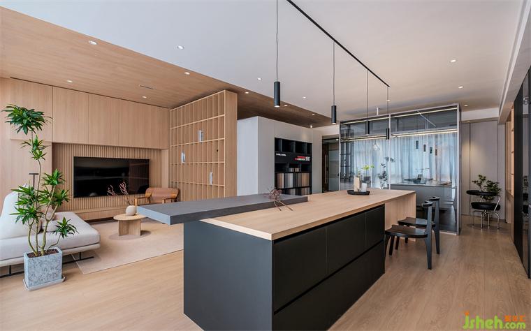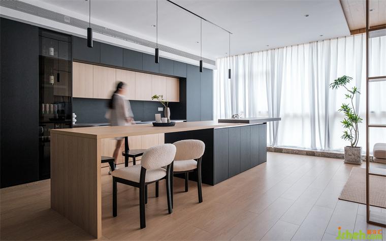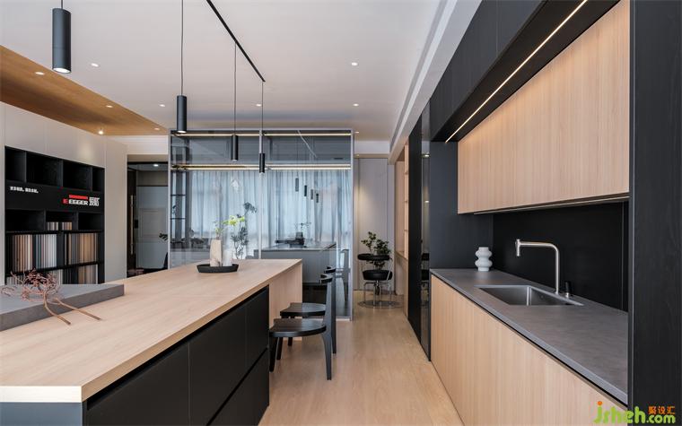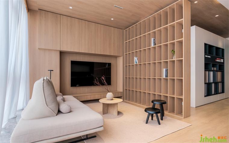 在空間的功能的分布中,我們用柜體、隔斷等功能展示去替代實墻來劃分區(qū)域,裝修公司通過不同的材質(zhì)和體量的調(diào)整,來減輕空間的壓迫感,高低錯落的盒體,趣味性十足。