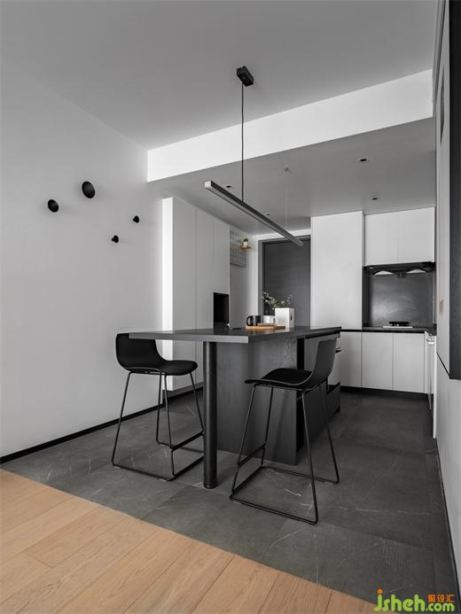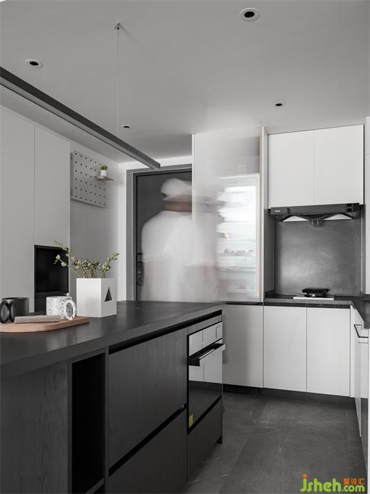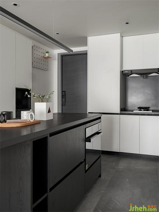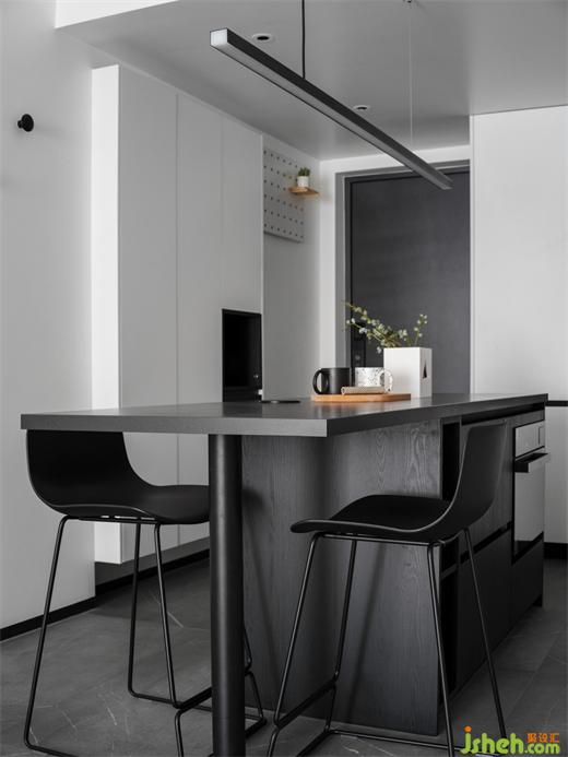 一字型的中島臺(tái)提供了更大的操作和儲(chǔ)物空間,同時(shí)形成玄關(guān)和餐廚的洄游動(dòng)線,家裝設(shè)計(jì)擴(kuò)大了整個(gè)空間的視野,也增加了實(shí)用性,嵌入式的家電沒(méi)有多余的累贅,顯得餐廚區(qū)更加簡(jiǎn)潔統(tǒng)一。
