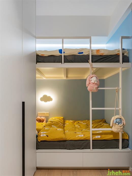 小朋友最愛的上下鋪也在兒童房得到了實(shí)現(xiàn),同時擁有了大容量的儲物柜和寬敞的學(xué)習(xí)區(qū),家裝設(shè)計沉浸在自己小小的世界里,肆意玩耍,這里就是就是她們的"童話王國"。