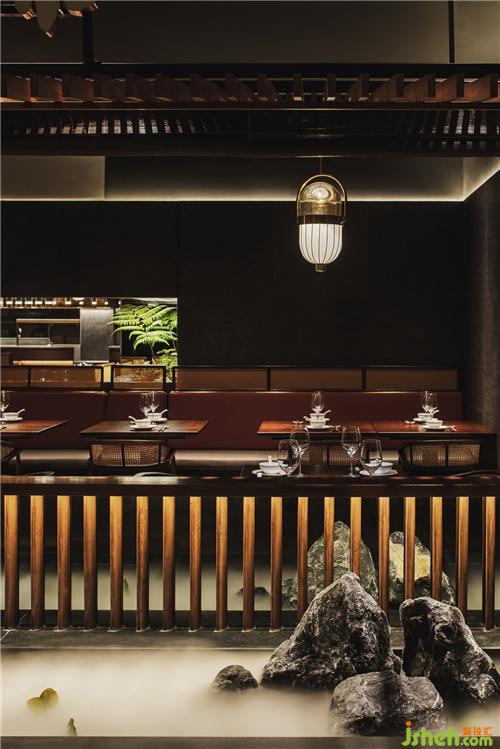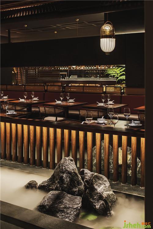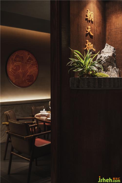 透過室內(nèi)小景,為空間植入1/3的氧氣,鮮氧鞣匯入空間,浸泡于菜品之中,渲染著客人用餐的情緒廣州餐廳設(shè)計(jì),此時(shí)此刻,哪得自在,是這份對(duì)故鄉(xiāng)的懷念,平常生活的百般滋味,都鞣進(jìn)著一茶一酒之中。