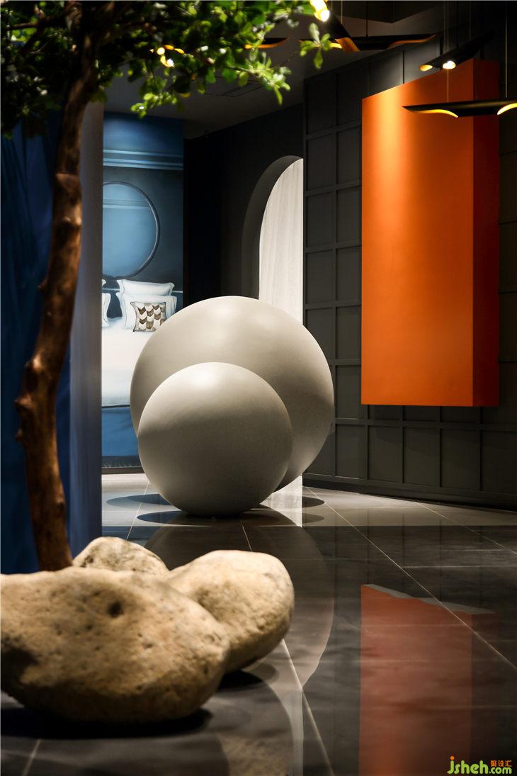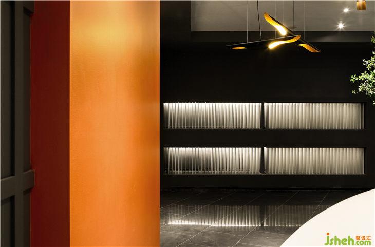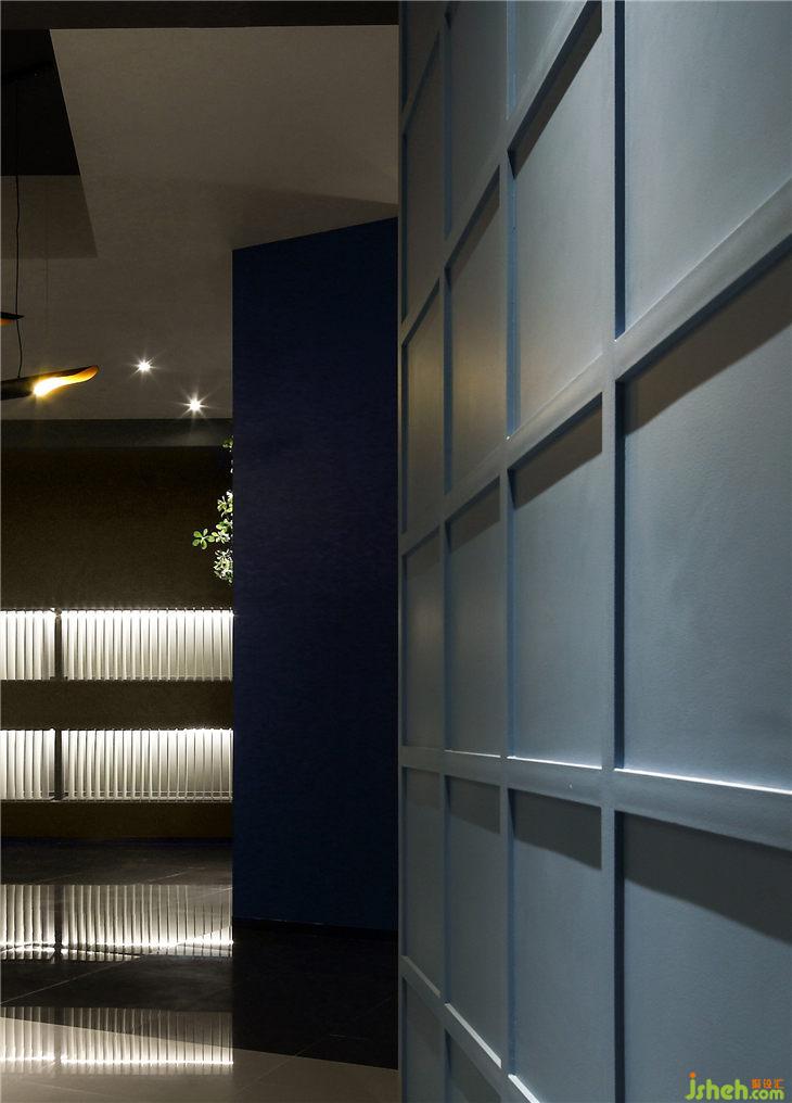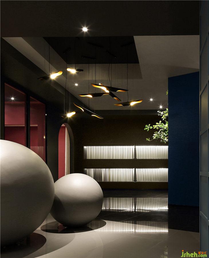 多形式的混合照明有利于形成良好的室內(nèi)環(huán)境,面光與墻面光互相配合,無論是規(guī)律的牛眼燈,還是從井格射出的光線,抑或后現(xiàn)代雙管鋁筒斜管燈,設(shè)計(jì)性和存在感都是其特色,或靜或動或明或暗,圍合出一種光羽琤琮,朗月澄明的空間意境。
