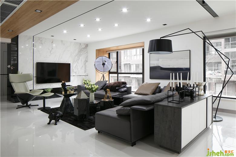 本案業(yè)主系兩位從事時尚事業(yè)的業(yè)主,追求比較純粹的空間,喜歡干凈明亮的空間感受。室內(nèi)設(shè)計師采用大面積不同質(zhì)感的白色材質(zhì)做為畫布,利用黑色不銹鋼線條元素作為畫筆勾勒出空間流線。地面全部純白色地磚,白色烤漆柜門,白色大理石電視背景墻,搭配大塊面溫和質(zhì)感木飾面,在墻面和天花上采用線條元素進(jìn)行空間延伸,塑造出空間之間的聯(lián)系。大客廳背景裝飾用到了木絲水泥板做構(gòu)成處理加上藏?zé)?。柔光與灰調(diào)碰撞,冷淡與熱情都恰如其分的點綴進(jìn)我們空間內(nèi)。