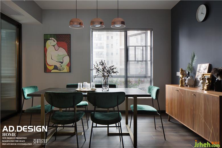在色彩方面,室內(nèi)設(shè)計(jì)師將餐廳墻面的煙灰藍(lán)與客廳沙發(fā)背景墻遙相呼應(yīng),而墻面上掛著的畢加索的《夢》,則是整個餐廳的點(diǎn)睛之筆,最簡單的繪畫表現(xiàn)出了一個在夢境和現(xiàn)實(shí)中的少女,不僅映襯了這個家的同時提升整個空間的藝術(shù)氛圍。