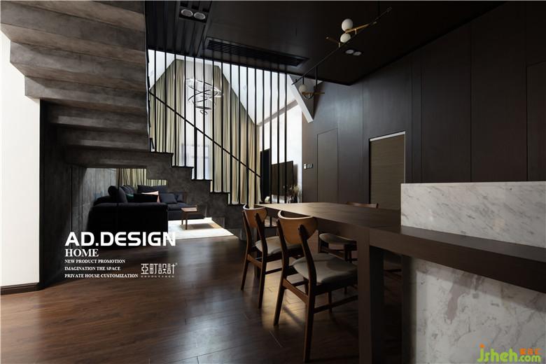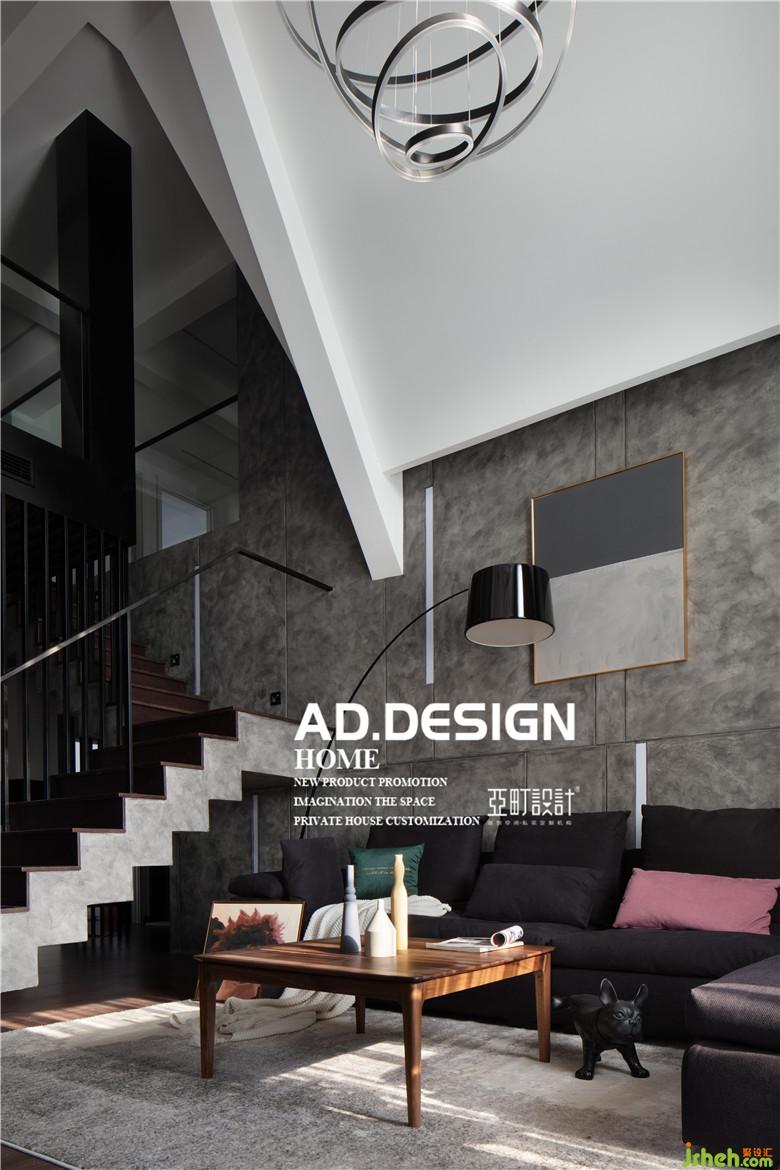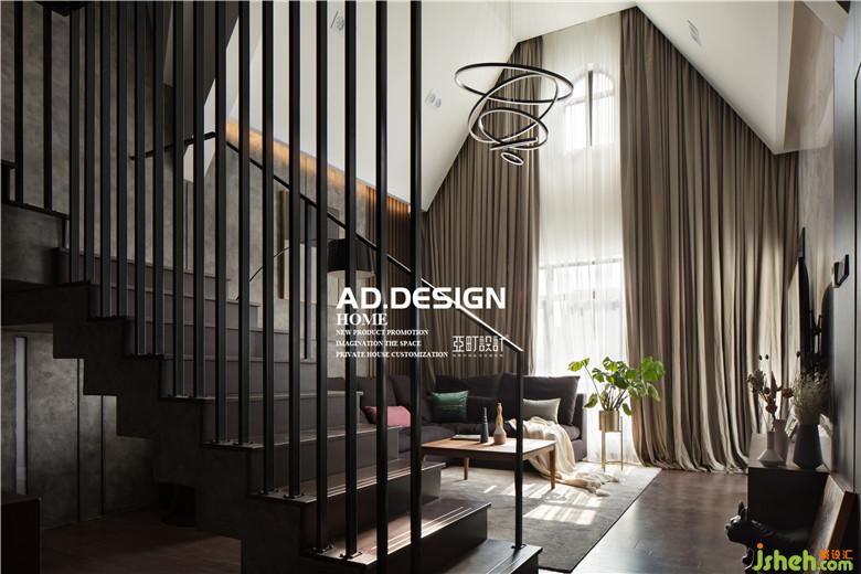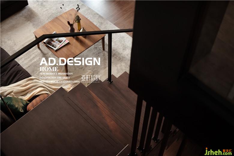 這是一個頂層復(fù)式,一樓的房高過高而二樓的房高又過矮,上樓的踏步比正常要多上幾個,上樓還容易撞到頭,因而樓梯的設(shè)計是室內(nèi)設(shè)計師一個很大的難點。