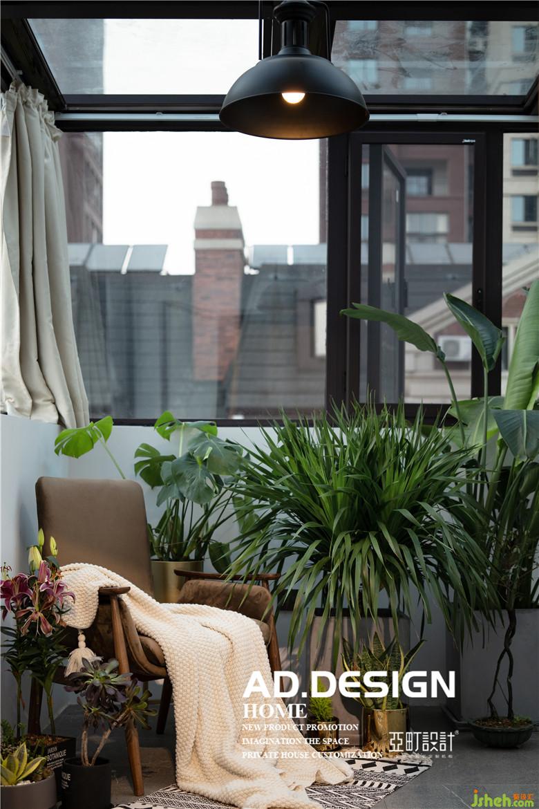 電視墻的一邊是一道進入生活陽臺的隱形門,對稱的另一邊則是玻璃陽光房,專屬于小仙女的多肉世界。