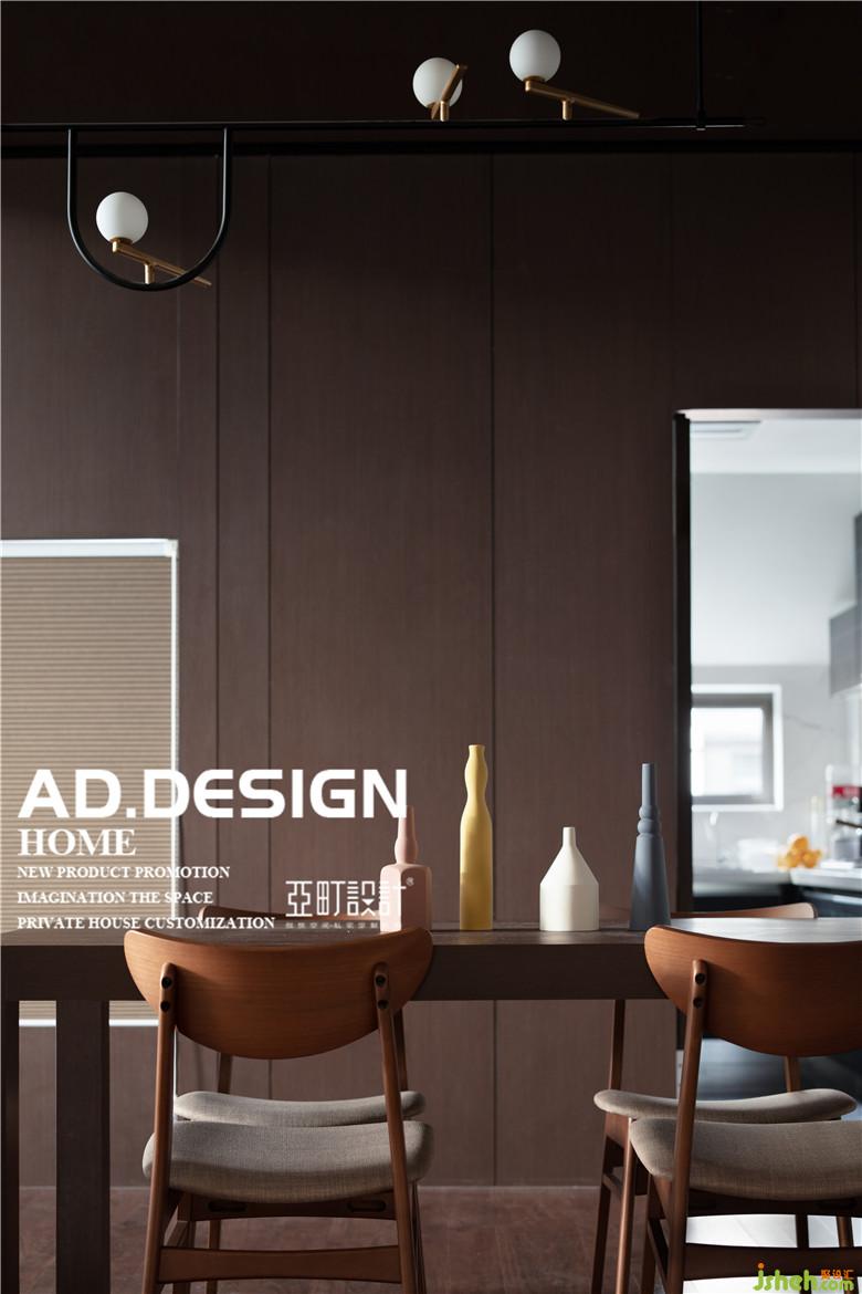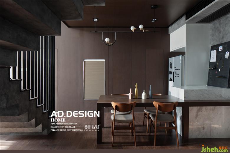 餐廳上方挑空搭建書房,跟客廳形成空間差。餐廳墻面跟頂面是同材質(zhì)的飾面板,整個飾面板里藏著兩扇隱形門,居家空間里的小微妙。
