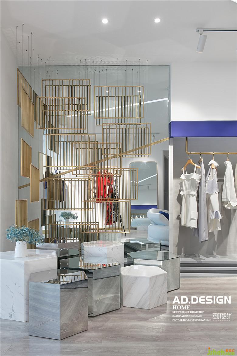 該店坐標(biāo)北辰定江洋,業(yè)主是老板兼美女服裝設(shè)計(jì)師,有著高顏值和魔鬼身材,同樣也是自己服裝品牌的最佳模特。店內(nèi)室內(nèi)設(shè)計(jì)師整體以白色為主調(diào),用寶藍(lán)色、金屬色、淺灰色調(diào)為空間打造既富有層次感,又能展現(xiàn)出摩登時(shí)尚的視覺效果。極簡風(fēng)格運(yùn)用最多的就是黑白灰,想要讓空間亮起來就要看如何控制好細(xì)節(jié)。