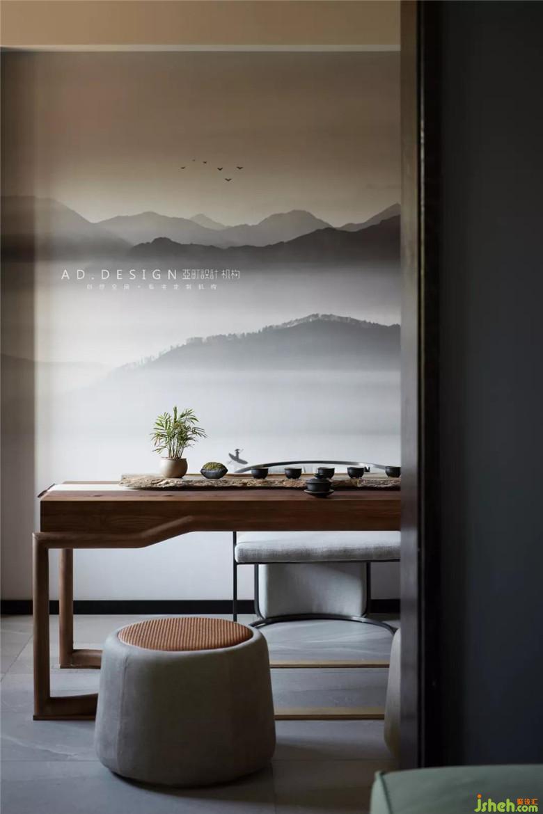 ▲茶室區(qū)域利用客廳與游戲室之間的空間打造。業(yè)主在平日會客的同時又能時刻關(guān)注在游戲室內(nèi)孩子們的情況。