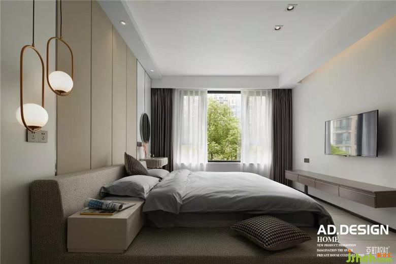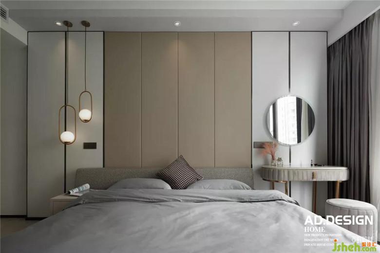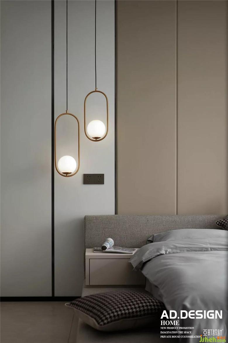 床的一側是有設計感的吊燈,