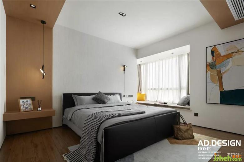 幾何結(jié)構(gòu)頂面、木飾面墻面、紋理感壁紙、是這個(gè)空間的面貌,裝修公司配上設(shè)計(jì)感的壁燈和色塊拼接畫(huà)裝點(diǎn)了這一室的溫柔時(shí),多了一份色彩的跳躍愉悅。