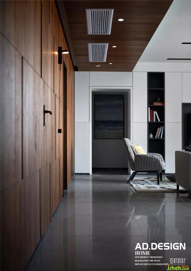 入戶(hù)在原始結(jié)構(gòu)上對(duì)原墻體做了一些調(diào)整,將鞋柜內(nèi)嵌進(jìn)墻體,從入戶(hù)連結(jié)過(guò)道設(shè)計(jì)一整面的木質(zhì)背景墻面,裝修公司將臥室和廚房的門(mén)也融合在其中,頂面與墻面的木質(zhì)組合構(gòu)建出整個(gè)空間的視覺(jué)中心點(diǎn),定下全房的主體格調(diào),在過(guò)道盡頭一整面柜體式的電視背景墻面,既創(chuàng)造一個(gè)簡(jiǎn)約大方的視覺(jué)感官,也具備強(qiáng)大的家居儲(chǔ)納功能。