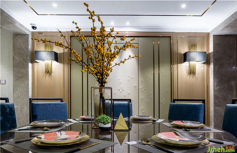 室內(nèi)設(shè)計(jì)師采用高級皮雕材料,巧妙搭配自然質(zhì)感的石材以及金屬元素,璀璨的金色和幾何經(jīng)典,給予色彩最大的禮贊。