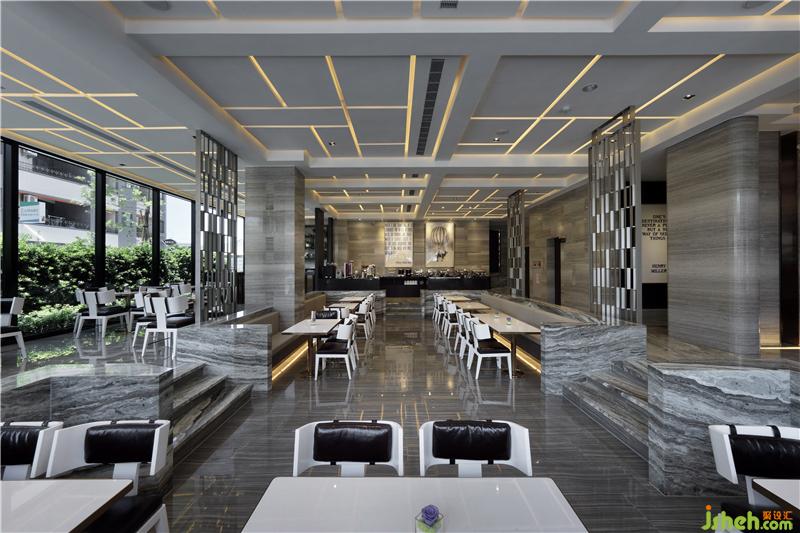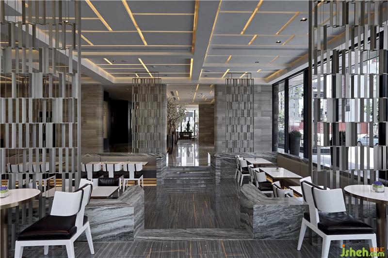 一樓大廳,利用介面,創(chuàng)造了過道空間,在旅人的行走間轉(zhuǎn)化下一次啟程的心境,也因在水平中改變空間的應(yīng)對(duì),使得視覺的駐留多了豐富的層次關(guān)系,亦或在水平的視線中創(chuàng)造垂直線性的屏風(fēng),重復(fù)的元素讓數(shù)大表現(xiàn)了美的本質(zhì)。