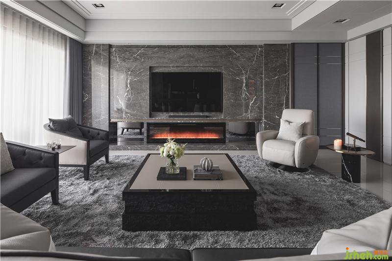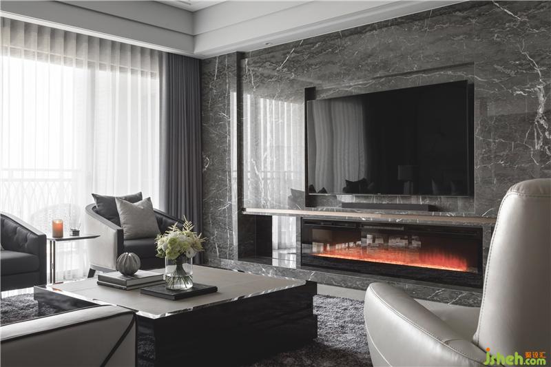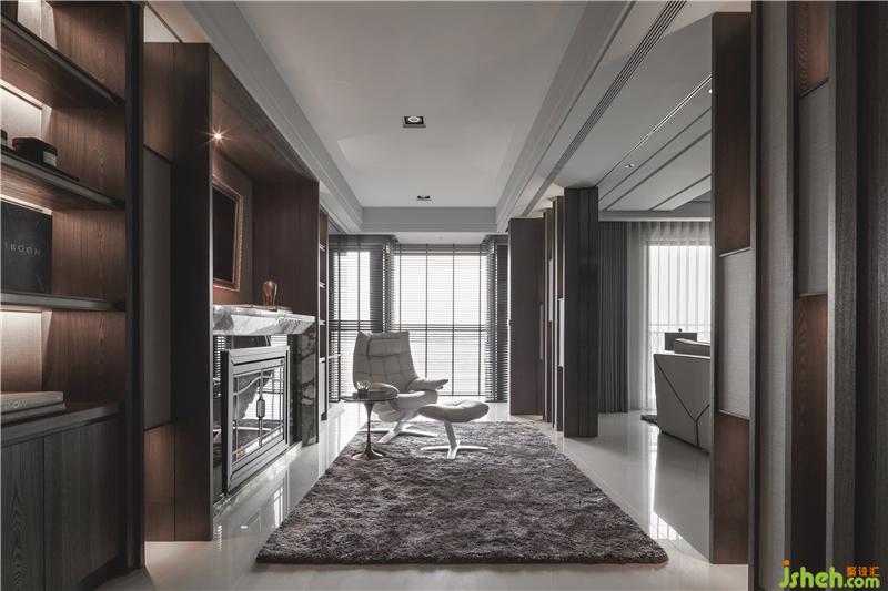 設(shè)計(jì)以水墨屏風(fēng)來(lái)界定空間定義,金屬分割更強(qiáng)調(diào)出整體層次感,看似大量的沖突,在屏風(fēng)背后產(chǎn)生的卻是另一種英式語(yǔ)匯,以壁爐為中心貫穿整體空間縱軸線,搭配深色木質(zhì)地,溫潤(rùn)肌理豐美的大理石,體現(xiàn)整個(gè)空間品質(zhì)的要求,延伸出居所的內(nèi)斂與穩(wěn)重。
