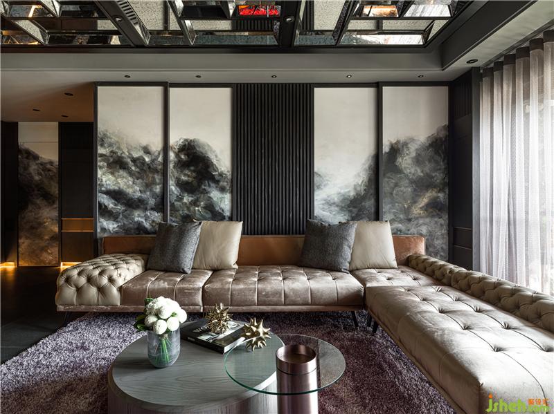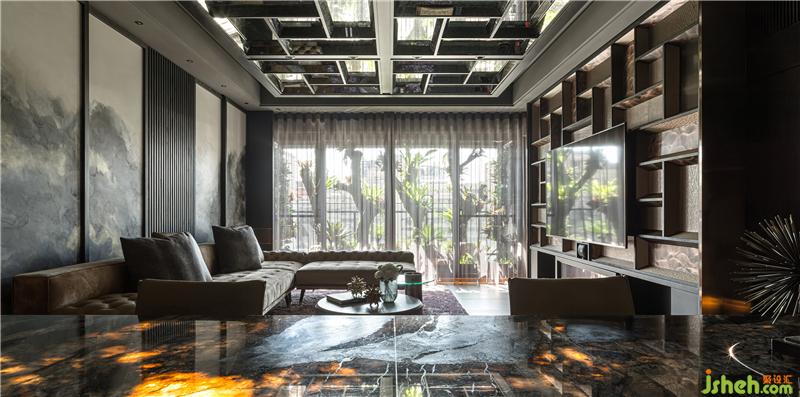 主要材料:木皮、鍍鈦金屬、皮革、仿古鏡、大理石、抽象畫、枯木、自然植栽